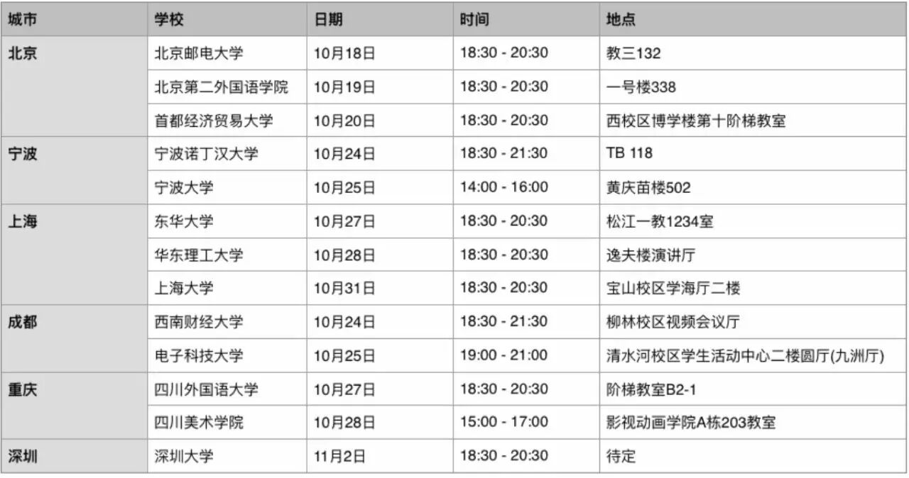 我们期待与你面对面交流,并在此邀请你注册参加 Apple 即将在各地大学校园举办的人才招募活动。 (点击图片可以放大查看) 我们将在招募活动期间安排面试,欢迎你提前申请。请点击“阅读原文”立即注册报名 Apple Store 零售店校园招聘活动。