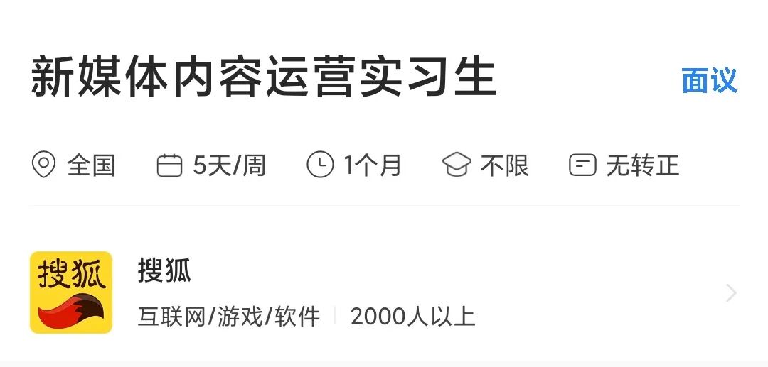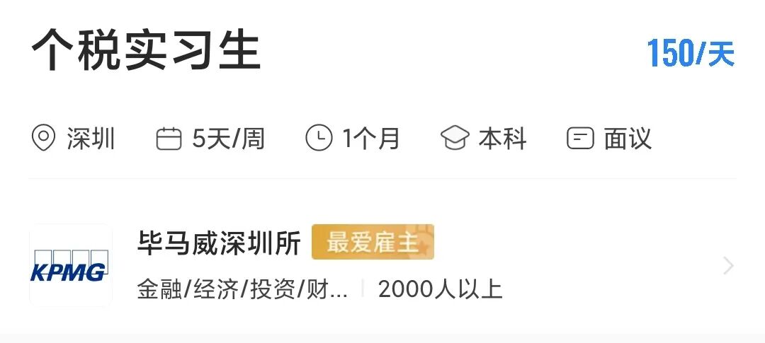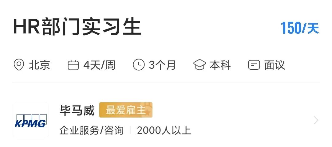 比如下面这些岗位:搜狐、中信、毕马威等,最短3天/周,一个月结束实习,拿着香喷喷的大厂经验过年,真的很难让人拒绝