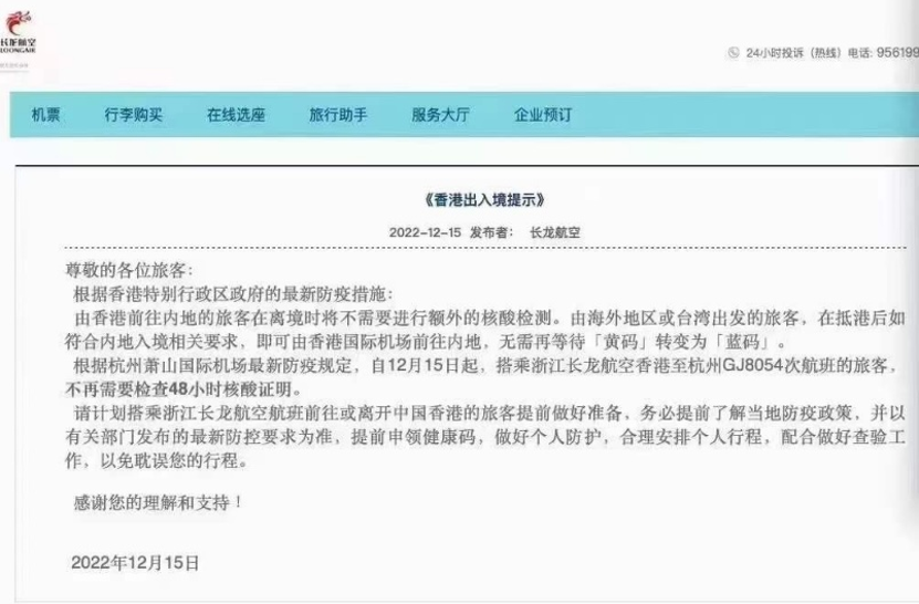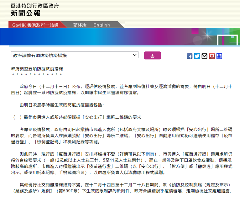 前两日,中国香港特区宣布:从2022年12月14日起再次放宽入境防疫规定。