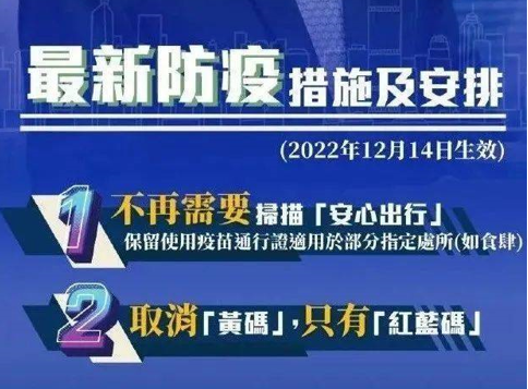 香港特区宣布,12月14日起,香港会取消“黄码”,包括入境人士在内的非确诊者均为“蓝码”,可参与正常活动。