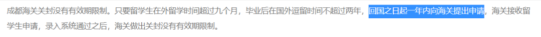 不止有免税车、留学生回国创业补贴、生活补贴、落户政策等都要抓紧。各地区政策不一,有的要求世界前100,有的要求世界前200,有的毕业内5年也可以申请,同学们要精准定位自己的城市!