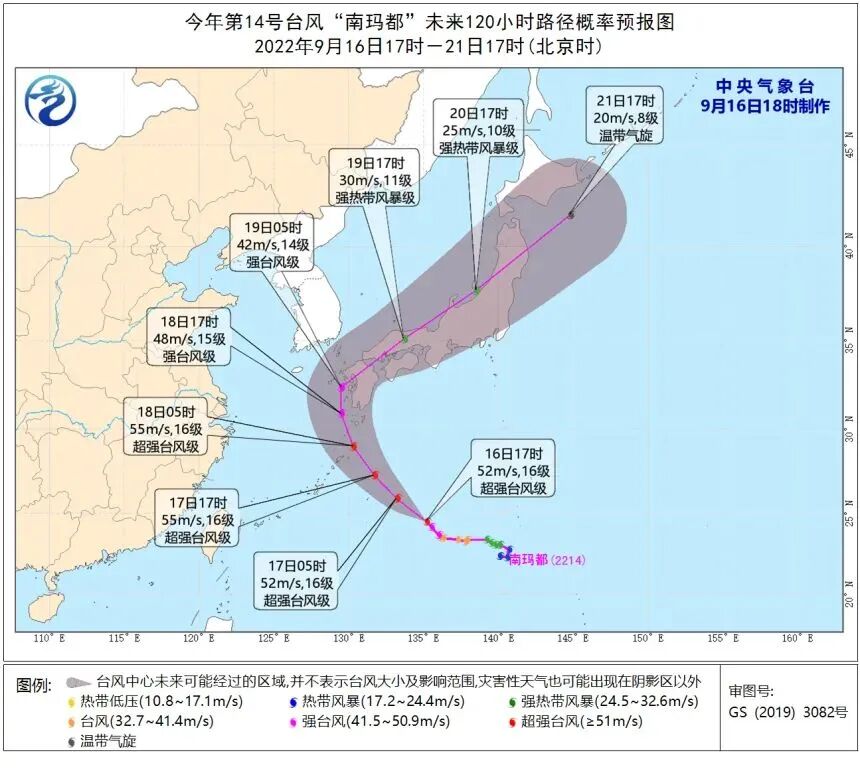 虽然“梅花”停编了,但第14号台风“南玛都”又来了。16日下午,“南玛都”已升级为超强台风,预计“南玛都”18日将移入东海东部海面,19日转向东北方向移动,强度逐渐减弱,并将大概率登陆日本。
