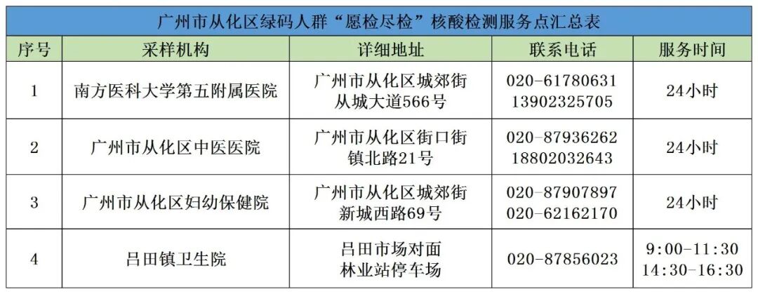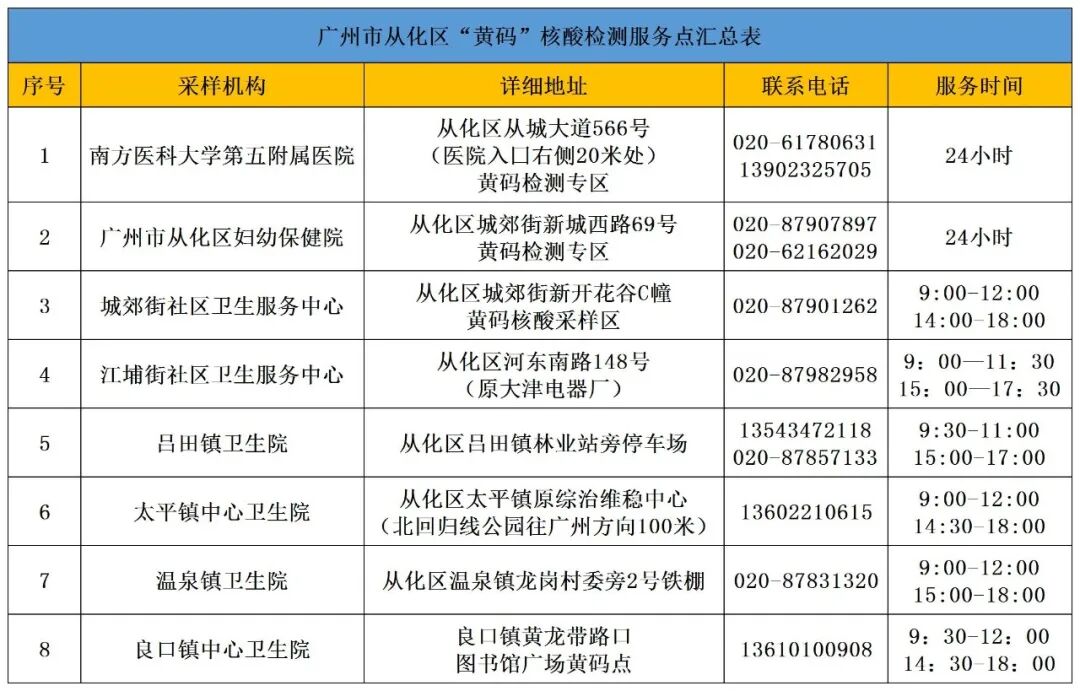 广州从化发布最新核酸检测点