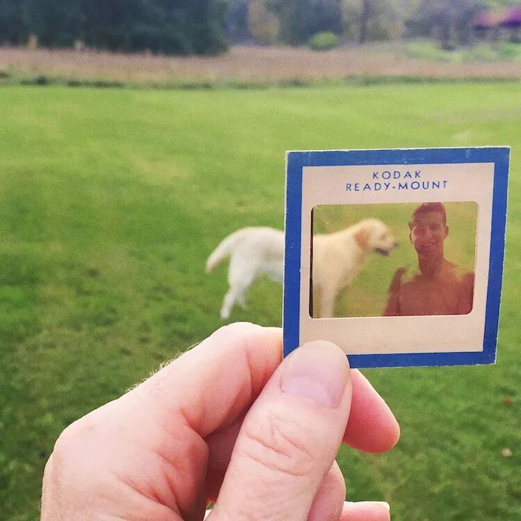 虽然现在的影像多半以数码方式保存,但是许多人家里想必还是留着到照相馆冲洗出来的老照片吧!这些照片虽然保存起来较数位影像困难,然而家人相聚的时候拿出相本,并肩相倚翻阅那些旧时回忆,将是多么温馨美丽的画面。艺术家Catherine Panebianco也搜集了不少主角为家人的旧幻灯片,以此创作了《记忆永不孤独》(No Memory is Ever Alone)系列摄影作品。她将这些幻灯片拿到真实生活中类似的背景处重新摄影,当数十年前的影像奇迹似地与她眼前的风景完美叠合,就仿佛如今已然年迈的家人重回青春时光,与她生活在同一个共沐朝阳与微风的瞬间。