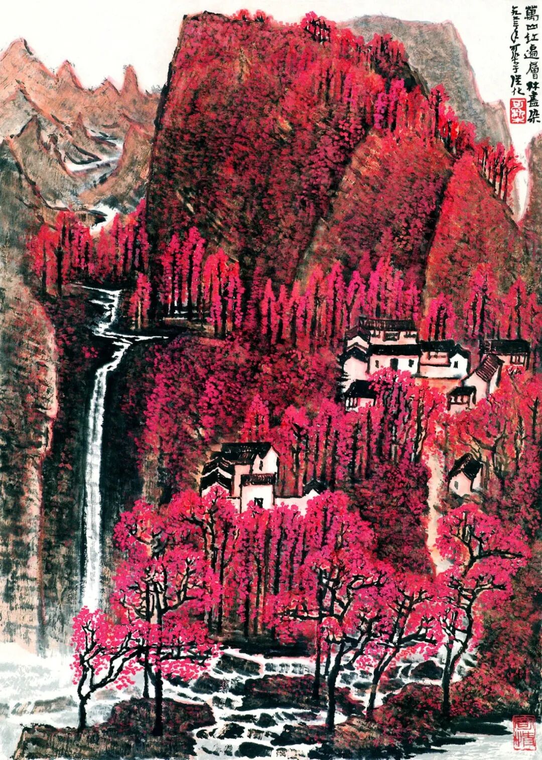 红,铺张开来,无边无际。山,自在生长,挺立如碑。霎时间,万山红遍,层林尽染。这是我国国画大师李可染创作的中国山水。宣纸上耀眼的红,来自1963年秋广东从化那片横跨北回归线的杉树林。中央广播电视总台纪录片《美术里的中国》复活经典画作的真实情境,立体式呈现华南深秋美景,让大家沉浸式感受画家眼中的壮美之红。《万山红遍》是李可染在二十世纪六十年代艺术创作高峰时期的系列国画作品。1962至1964年间,他曾七作《万山红遍》,成为中国现代绘画史上的佳话。当中第二幅《万山红遍·层林尽染》创作于1963年,取毛泽东诗词《沁园春·长沙》中“看万山红遍,层林尽染”之意。这一年,李可染遍访祖国大山大河,用朱砂尽染山川大地,方寸间,写出了谁主沉浮的豪情万丈。这幅画也开启了中国绘画史上色彩表现的新阶段与新境界。李可染作品《万山红遍·层林尽染》 《万山红遍·层林尽染》采用“顶天立地”的构图方式,将巍峨的山峰占据画面中心,凸显群山的撼人气势。为了表现“遍”的意境,李可染大胆创新——以墨为底,再使用大面积红色朱砂覆彩。墨色反复积叠出山体的层次;积墨之上,深深浅浅的红不断点染、交织,令秋林似浮雕般立体。同时,为了打破大块红色可能带来的沉闷与压抑,画家在左侧的层叠山峦间,点缀了流水与树木。白色的飞瀑、溪流与掩映的瓦屋,使画面气息通透,流露出摄人心魄的灵气。前景中低矮的树林如同剪影一般,将光色巧妙结合,尽显诗情画意。最后,李可染又把“万山红遍,层林尽染”这两句诗作为题跋书写在画作右上方,成为整幅作品的点睛之笔。李可染作品《万山红遍·层林尽染》局部 区别于传统山水画,《万山红遍·层林尽染》在题材、构图、笔墨、意境等方面均取得了创造性的突破,将我国山水画提升到了理想化、富有象征意义的境界,充分体现出这位艺术家所追求的创作理念——可贵者胆、所要者魂。二十世纪五十年代,中国画的痛点来自传统山水花鸟如何适应社会变革。为了让国画重获生命力,李可染找到了突破口,即“为祖国河山立传”。真山真水丰富了画家的笔触,他在之后的十余年里进行了数十次户外写生,走遍全国各地寻找心中的灵感源泉。国画家李可染 这段时期,李可染的作品既蕴含中国传统国画大师所涵养的笔墨格调,又富有西方油画中强调光影、色彩的绘画特点。这种奇妙融合让他成为了中国山水画变革的开拓者。笔墨当随时代,如今距李可染创作《万山红遍》已过去近六十载,但大师的美术创作观念永远不会过时。Red is probably the most favorite color in the heart of Chinese people. In Chinese culture, red usually means something vigorous, enthusiastic, inspiring or auspicious. It's also a common color in classical paintings.The famous painting "Ten-thousand Mountains Bathed in Red" is a representative series work in the case. Created by Chinese artist Li Keran, the artwork opened a new chapter in the use of red color in the Chinese landscape paintings. The documentary series "Fine Arts in China" produced by China Media Group revives the real situation of classic painting, vividly presenting the stunning late autumn scenery of south China and immersing spectators in its magnificent red foliage."Ten-thousand Mountains Bathed in Red," shown in the video, is the second of seven landscape paintings -- all showing different scenery under one title -- which Li Keran created between 1962 and 1964. This body of work, inspired by a poem written by Chairman Mao Zedong, depicts an autumn scene featuring mountains, forests, waterfalls, streams and people's homes. In 1963, after visiting many scenic spots around China, the artist chose to use the vermillion pigment for his masterpiece, portraying the towering aspirations of the country.The scene depicted in the painting is a larch forest in Guangdong. In the picture, the mountain stands like a proud monument in the midst of varying hues of red, while the rich crimson permeating the dense woods offers an apt backdrop for all the creatures striving freely under the heavens. Meanwhile, a clear mountain stream meanders across the land, flowing and burbling in a graceful arc around the human dwellings.In traditional landscape works, the natural world was imbued with either a sense of ease and clarity or marked by an imposing grandeur and gravity. This work, however, used meticulously layered ink wash paint to show the volume of the mountains. The application of shifting textures then sculpted the autumnal forests like a bas-relief. In addition, the painter reproduced the poetic art world of southern China with the contrasting red and black -- the overpowering red soon etching itself into the minds of viewers.Drawing directly from the natural world was the ambitious goal of Li Keran in his bid to renew Chinese painting. Over many years he explored a fresh sense of spirit and soul to underpin China's art tradition in this new era. In the 1950s, China's traditional fine arts were riding high, as its many practitioners tried to adapt and improve on these time-honored techniques. Li ranked among these pioneering artists, as he saw painting scenes from real life as a gateway to the transformation of China's fine arts. He believed the artist must venture deeply into the natural world and merge their character with that of their era.The painting master once wrote: "I follow no traditional formulas, but I am faithful in tradition." The magnificent landscapes inspired his brushstrokes and revealed to him the limitations of traditional techniques. During this transitional period, Li's works presented a distinct combination of the styles of Chine