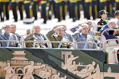 纪念中国人民抗日战争暨世界反法西斯战争胜利70周年阅兵式,抗战老兵乘车方队。