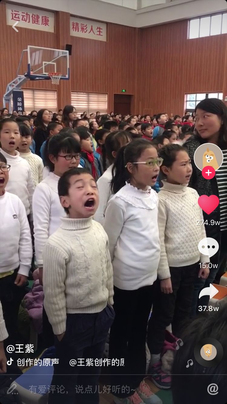 网友@王紫 拍摄女儿唱校歌的视频,