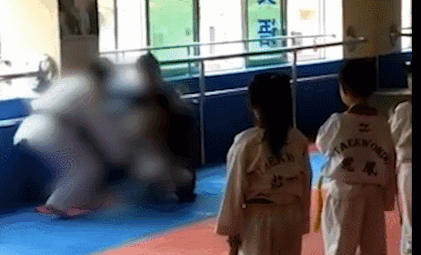 广元市老城蜀门市场龙凤跆拳道的老师粗暴对待9岁学生,家长找老师理论遭恐吓。记者根据网友提供的视频看到,一名身穿跆拳道服装的学生坐在地上,然后老师说了两句后,直接抱起学生,然后摔在地上,该学生急忙爬起来,然后老师大喊“滚、滚”。而后有家长找老师理论,老师被一名女士抱住推开。