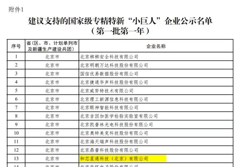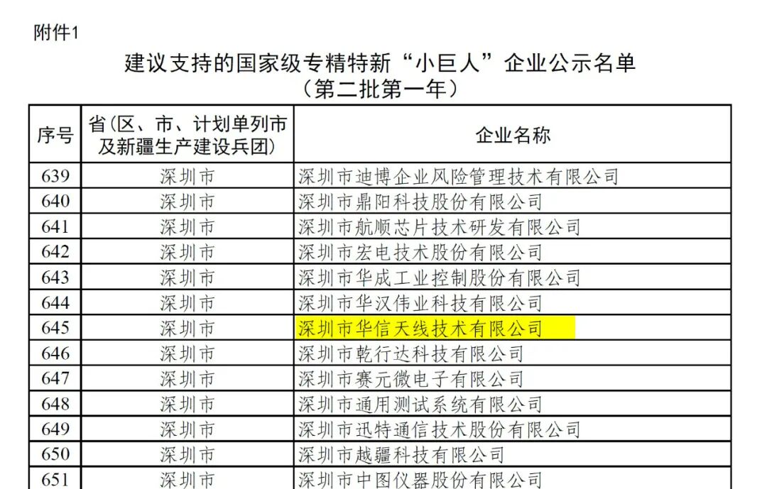 工业和信息化部近期分别公布了首两批“建议支持的国家级专精特新‘小巨人’企业名单”,北斗星通旗下企业和芯星通、华信天线作为各自细分市场领域的佼佼者成功入选。