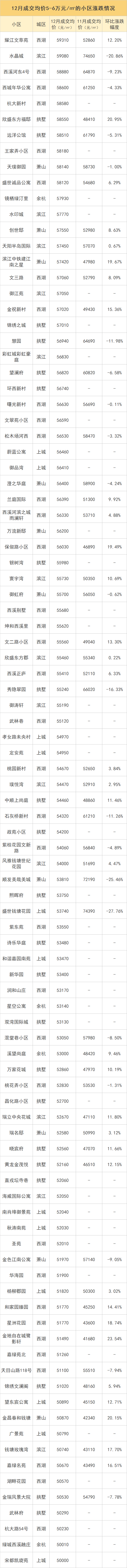 不过整体来看,12月成交量依旧有5600套,仅次于2022年成交量最高的6月6738套。另外,从钱江晚报美好人居研究院的数据来看,12月有成交的二手房小区,降价的小区数量已基本与涨价的持平,也就意味着二手房市场进入止跌企稳的状态。注:一、以上数据来源于中指研究院,统计为2022年12月二手房成交均价,11月二手房成交均价;表格中“-”代表2022年11月无签约价格或无涨跌情况;二、在不同成交时期,成交的物业类型(别墅、排屋、公寓等)、精装与否、户型大小、楼层与楼幢位置的不同会造成价格变动;三、有些房源为了减少税费,会稍微压低成交单价;而有些二手房为了增加银行贷款,也有可能稍微做高单价,具体房源信息建议去实地看看。