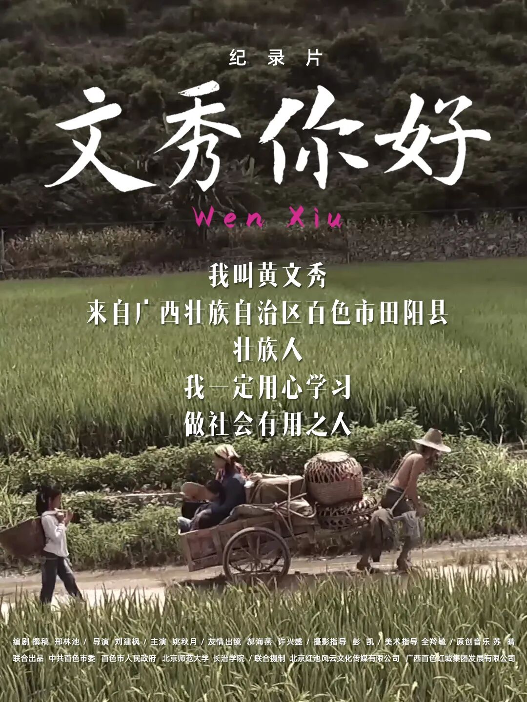 《文秀,你好》由中共百色市委、百色市政府、北京师范大学、长治学院联合出品,是一部生动质朴、感人至深的人物纪录片,展现了黄文秀平凡又不凡、短暂却永恒的一生。影片以第一人称口述,通过真人扮演、电影化再现,采用了包括日记、笔记、照片、视频在内的大量真实素材,全景演绎了黄文秀的人生故事和作为驻村第一书记的工作成绩,用老师的真情见证、父亲的动人心声,讲述了她不为人所知的成长细节、学习思考和心路历程,充分表现了她励志求学、战胜贫困、反哺家乡,扎根脱贫攻坚一线,用青春诠释共产党人初心使命的感人事迹。