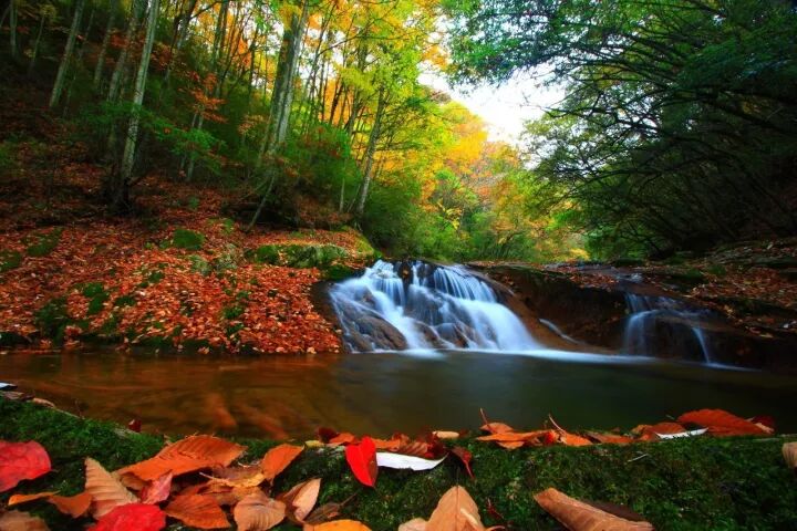 一到秋天,山间色彩极为斑斓,堪称天然画廊。光雾—米仓山国家森林公园这一线更是景观丰富,争奇斗艳。