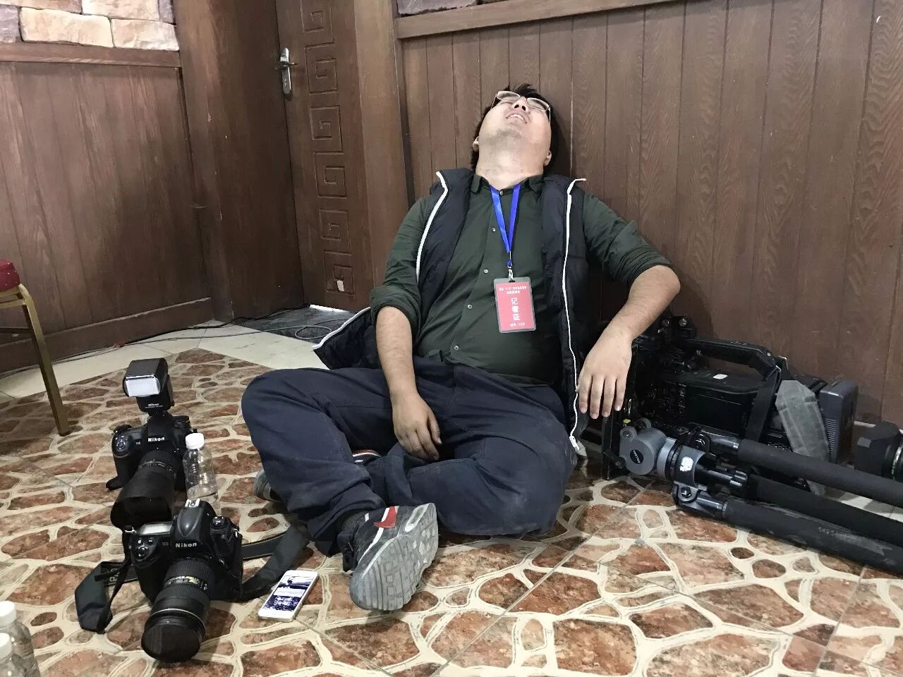记者田为在采访间隙忍不住打了个盹▼