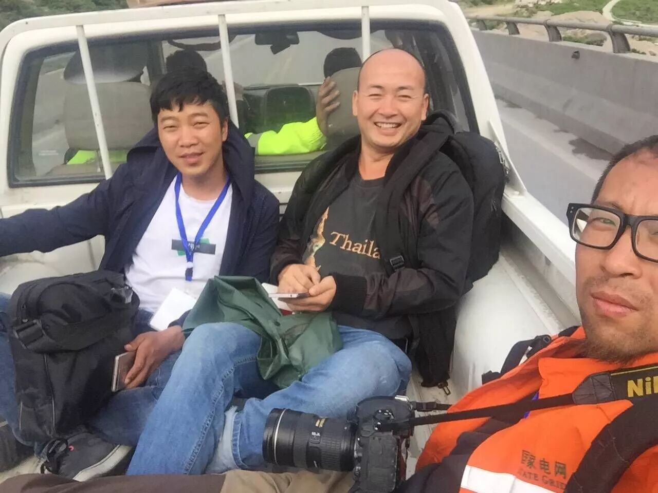 徐中成、阮长安、郝飞(从左至右)在采访途中▲