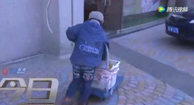 当时他正在整理板车上的快递