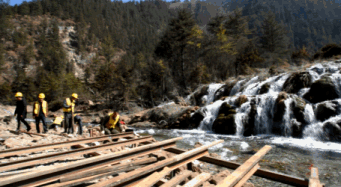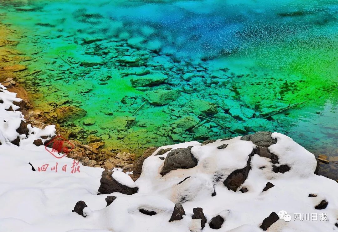 在诺日朗瀑布交界处,通往熊猫海、珍珠滩瀑布的一条线路完全封闭,通往长海的线路开放,但沿途积雪很多,最深处淹没膝盖,铲雪车正在抓紧除雪,疏通道路。