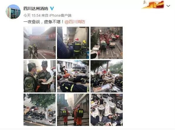 2日23点半,记者到达现场时,救援人员正陆续撤离火场。达州市公安消防支队政委高明月介绍,此前,主要采取内攻为主的救援方案,一边扑火、排烟,一边尽可能转移火场内物资。“里面浓烟不断,消防官兵作业时必须靠空气呼吸器,这个时间最长持续40分钟,抛去我们进出的时间,灭火、抢救物资的时间只有20分钟,我们的消防官兵轮番上阵,能抢救的财产基本都抢救出来了。”当下,着火楼内温度达到上百摄氏度,火情已经发生了变化,已经无法再按照此前方案进行内攻,整个战略战术进行了调整,先扑灭明火,再外攻。