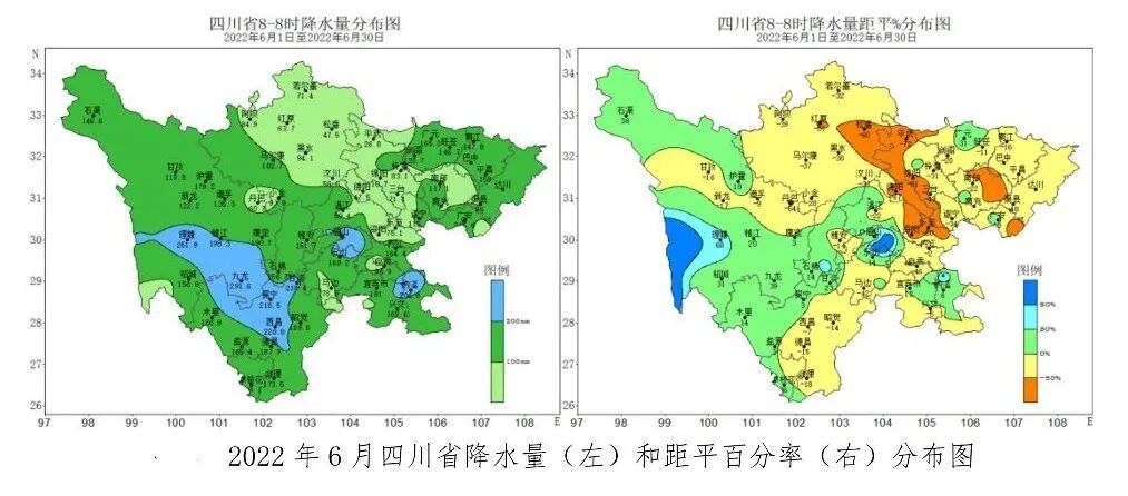 值得一提的是,气象观测发现,6月,盆地和川西高原大部气温偏高,而攀西地区大部气温偏低。位于眉山市的青神站凭借319.5毫米总降水量,成为6月全省降水最多的站点;位于广元市的青川站则于6月29日日最高气温达到37.2℃,突破了本地历年6月极大值记录。