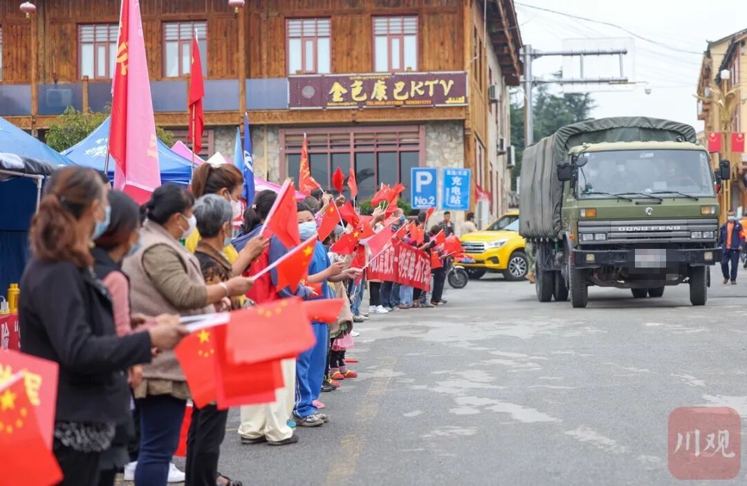 泸定上千群众赶来送别救援队伍