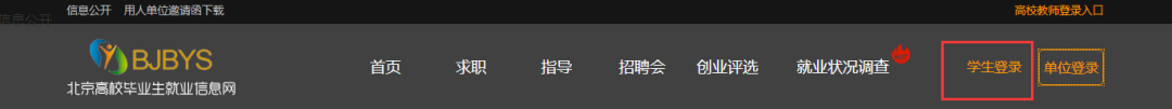 2.非首次登录:进入北京高校大学生就业创业信息网,点选首页右上角"学生登录"按钮,用学信网注册时绑定的手机号和首次登录时设置的新密码(如未更改,则为身份证后8位)登录即可。