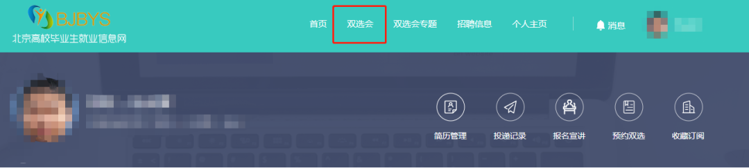 1.登录进入北京高校大学生就业创业信息网,点击网页上方"双选会"栏目。