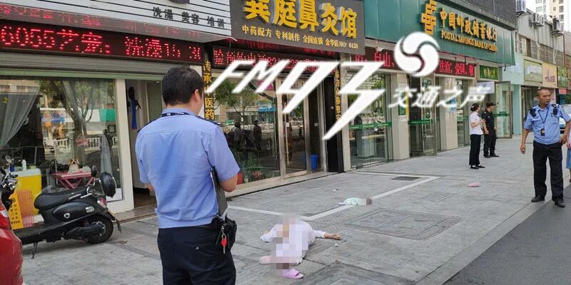 小王是在楼下开了一家炸鸡店,事情发生时,他在门口擦店门的玻璃:“先是一个小孩掉下来,因为砸到广告牌,所以声音特别响,我刚好在擦这块玻璃,我就侧出去看,我以为谁把垃圾扔下来了,结果就看到一个女的已经在空中了,大概4米高的样子,然后就直接掉到地上了...”
