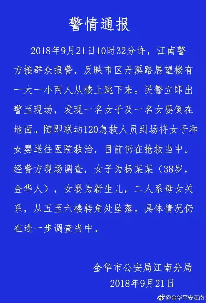 当天下午2:16分左右,金华市公安局江南分局发布通报: