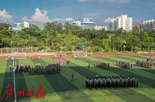 广大附中的军训时间为初中6天,高中9天,是广州军训时间最长的中学之一。而国防班的学生,还经常需要在夜晚加练。不仅高一国防班学生要暑期军训,高二国防班学生还要接受“进阶版”军训:匍匐前进、100米障碍跑、过独木桥、劈枪、战术训练,一样都不能少。另外,国防班每周有一节军事体育课,训练课目有三公里跑、军事技能、战术基础动作等,周日下午还有1小时30分的训练课,每周一6:30到7:20,学生们还要出早操。
