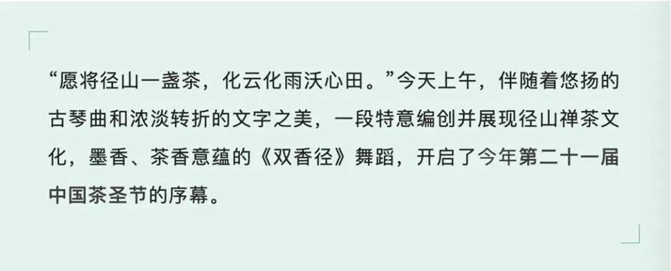 据《环球时报》报道,这则名叫《双香径》的舞蹈,以“第二十一届中国茶圣节原创舞蹈”之名,发布于浙江少儿频道的视频号。与此同时,浙江少儿频道的公众号也做了相关介绍,“一段特意编创并展现径山禅茶文化,墨香、茶香意蕴的《双香径》舞蹈,开启了今年第二十一届中国茶圣节的序幕。”