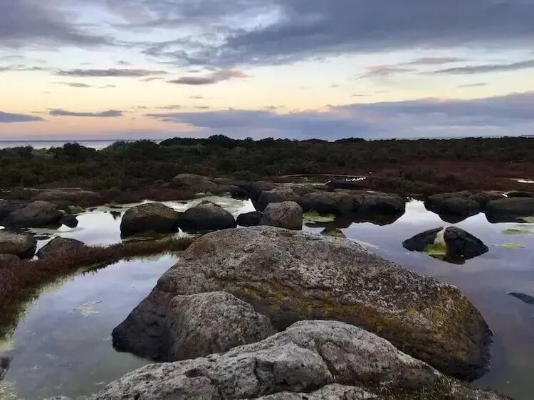 Half Moon Bay是一个很美的打卡景点,它是一个小众沙滩,沙滩旁有形状各异的砂岩,非常适合拍照,傍晚在沙滩上看着落日心情都会变好。