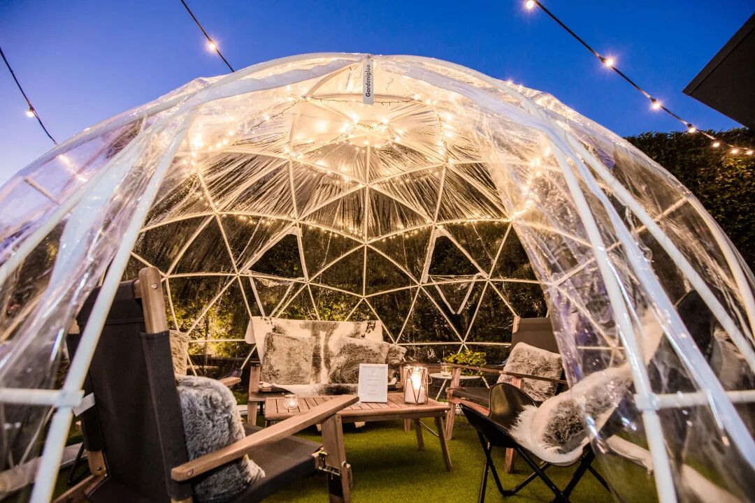 渴望在户外享受美食,但又不想吹冷风?现在有舒适的冰屋花园形式的私人仙境。进入你的冰屋,安顿在铺有毛毯和毛绒枕头的舒适椅子上,享受美食和饮料套餐,从内而外放松身心。
