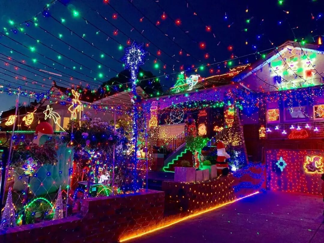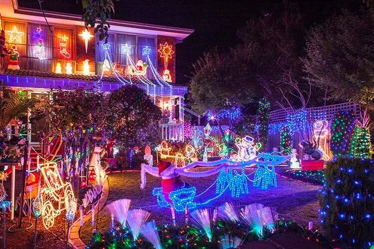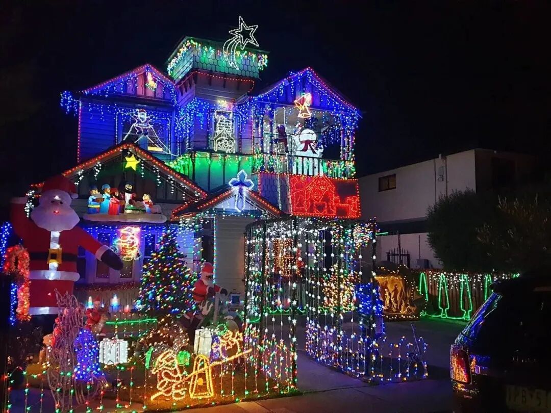 在Wantirna隐藏着一个令人印象深刻的灯光展。一个由悬挂的仙女灯组成的花园,被霓虹灯围绕着。在那里,你会看到各种角色和充气装置,伴随着圣诞曲调。