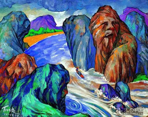 一如他的肖像作品,从不以美取媚于人,而更在于人物内在的情绪流露;又如他自己晚年所言,同学赵无极的画“似是而非”,而他自己的作品则常常“似非而是”。尤其表现在山水风景上,他化山林为怪兽,更是“自作主张”,将山水风景赋予精神和灵魂,甚至变形为人像与动物隐匿其中,在借鉴西画色彩经典的同时,不断结合中国本土语言探寻自身创作特点。