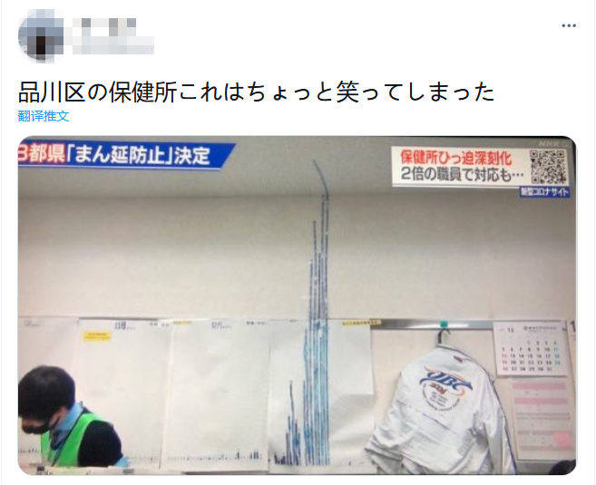 “品川区保健所墙上贴的是感染人数?柱状图都上天花板了。”