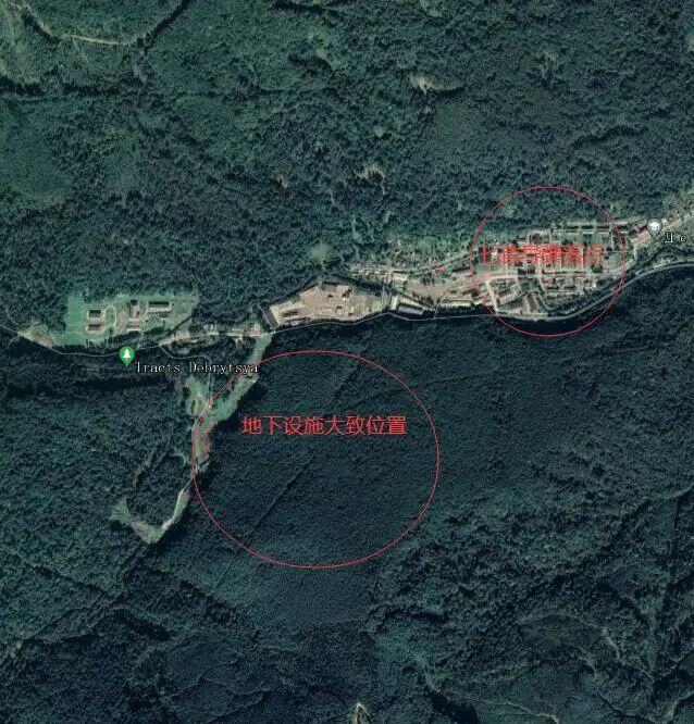 从卫星图上我们可以看到这个地方的地下掩体入口,其实对照更早的卫星图可以看到原本地下掩体入口边上有树林,还比较难以辨认,但现在已经是光秃秃的,一眼就能看出来是个入口了。