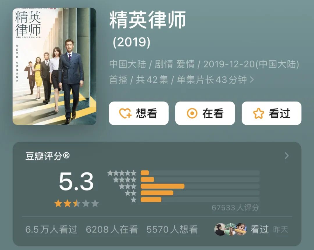 前脚在武汉荣登百花奖“影后”,后脚主演的大戏在暑期黄金档上线国内一线平台。在这个酷热难耐的8月,袁泉无疑做到了电影电视“两开花”。由中生代演员袁泉、黄晓明、俞飞鸿领衔主演,王志飞、王姬等老戏骨加盟,再加上“《庆余年》导演新作”的名头,出品方是《人世间》和《流金岁月》等爆剧、热播剧背后的新丽,律师职场剧《玫瑰之战》在开播前妥妥地将观众期待值拉满。不过,如今剧播到一半,它从剧情、表演到制作先后被指“抄袭”美剧、磨皮过度、不接地气,让剧里的中国律师保留了打棒球的“美式爱好”;但也被称赞演技在线、节奏紧凑。这样的褒贬不一,恰恰突显了国内影视产业的沉疴痼疾。打开豆瓣网站,就能看到《玫瑰之战》的信息栏,显示它又名“傲骨贤妻中国版”。开播之初,这部国产剧就吸引了众多美剧老粉评价,争论“版权”的归属。8月16日,该剧豆瓣开分仅5.1分,其中1星评分占比最大。在剧中,袁泉饰演的顾念本是一名全职太太,因丈夫出轨并身陷官司,她时隔10年重返职场。在老同学丰盛(黄晓明饰)的欣然推荐下,顾念进入了他所在的律所,俞飞鸿扮演的正是律所的另一位合伙人。随着人设、剧情、案件的重合,以及一张写有“该剧非翻拍、改编剧”字样的截图在网络上流传,《玫瑰之战》陷入了版权之争。直到8月12日,片方向媒体回应称,该剧版权关系合法合规,有相应授权。也就是这天,网友注意到新播出的第9集片尾,标注了《傲骨贤妻》版权方的授权。在版权风波之前,《玫瑰之战》最早被诟病的是“悬浮”,换言之,不接地气。有观众质疑编剧给角色照搬了一个“美式爱好”,导致剧中出现了黄晓明在律所会议中玩棒球的场景。袁泉饰演的家庭主妇也准备了“早午饭”(brunch)——烤鸡,想送给邻居吃。当她端着盘子来到别墅的室外,走在小区宽敞的路上,食物就暴露在外,没有任何包裹。女主丈夫因卷入贪腐案出庭,公诉人问他是否受到“性贿赂”,并拿出照片质问。结果辩护律师看似惊讶地抬起了头,他本人则突然申请不公开审理。旁听的顾念被要求离席,这才意识到问题。有观众质疑这样的情节发展。专业人士也告诉观察者网,“刑事案件一般不会证据突袭。”再查询新闻图片中领带与上衣的搭配,确实如他/她所言。之后,尽管已经离开职场10年,顾念在家庭发生变故后,轻而易举地重返律师岗位。此时,她也受到了律所另一位金牌律师的刁难,被要求在30分钟内扫描大量案件材料。几十条观众弹幕都在质疑女主笨拙的扫描方式,也疑惑律师干了助理的活儿。顾念出庭时失手把资料推落在地,打翻水杯,忙着擦笔记本上的水,慌张地把“被告人”喊成了“被害人”。这时候有观众觉得,尽管多年没有工作,但她有优秀的履历,这样的表现“过头”了。再到天还亮着,刚刚还很繁忙的律所一下子下班走光,只留下女主在办公室“努力”;案件设置简单,查案的变成了律师……这些都是观众认为“出戏”的点。国产剧“苦磨皮久矣”,《玫瑰之战》恰恰也陷入了这一争议。海清曾呼吁行业给中年女演员多一些机会,而这部剧中两位戏份最重的女演员刚好是70后,却又被网友认为“磨皮过度”。如果观众并不买账这样的“磨皮”效果,那究竟是谁在拒绝看到她们皮肤的真实纹理?与此同时,当她们终于获得了演绎这些角色的机会,观众和网友也才有了评价演技的机会:是低估,还是高估了?事实上,《玫瑰之战》开播伊始,当剧情迅速推进,袁泉从家庭主妇的长发回归利落短发,穿上修剪服帖的职业装,踏上高跟鞋,走进满是落地窗的高层办公室,一股精英职场剧的气息就扑面而来。在阵容强大、剧情紧凑的同时,它专注于女性成长,鼓励女性永远不要惧怕重新开始的立意,也受到不少观众认可。@酷云互动 的数据显示,剧集已经连续多日稳居全频道黄金档剧集亚军,15、16集直播关注度近0.95%。而今年年初的大爆剧《人世间》首播关注度近1.55%,结局更是破了3%。这样一部配置算得上顶尖的国产剧,却仍然没逃掉“悬浮”二字的网友观感,不能不说是一种遗憾。同期的另一部新剧《欢乐颂3》,同样收到了类似的评价。人设“并不富裕”的毕业生,穿着大牌服装,住在光鲜亮丽的样板间里,是影视剧“悬浮”的经典案例之一。而一旦“悬浮”,就意味着尴尬和出戏。为此感到失望的难道只有观众吗?市场的反应令人好奇。观察者网注意到,作为一部职场剧,《玫瑰之战》得到了两家律师事务所的支持,署名的法律顾问及公司法务多达14名。只是,他们是否被咨询过剧情设置等问题,外行人不得而知。在豆瓣网站的评论中,许多点赞数高的1星、2星短评都提到了美剧《傲骨贤妻》,并把它的韩国版、日本版翻拍剧与《玫瑰之战》对比,这也是后者开分仅5.1的原因之一。三部剧的豆瓣评分人数目前都在四位数,分型却大不相同。无独有偶,3年前的另一部国产都市律政剧《精英律师》,也只拿到5.3分。这样的结果,值得各方深思。国产职场剧何时能突围?又该如何突围?![]()