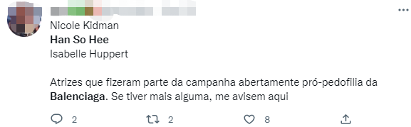 但外国网民对此并不买账,他们的怒火还蔓延到了近期与巴黎世家合作的明星,金·卡戴珊、贝拉·哈迪德、妮可·基德曼、伊莎贝拉·于佩尔、韩素希被社交平台用户施压,被要求与巴黎世家切断合作。