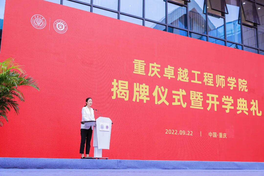 两江新区党工委委员、管委会副主任李洁表示,在全党全国喜迎党的二十大的重要时刻,两江新区正加快打造内陆开放门户和重庆智慧之城,建设高质量发展引领区和高品质生活示范区,奋力打造两江新区现代化建设“升级版”,建设重庆卓越工程师学院,必将有助于加快集聚优质创新资源,打造科技创新和人才培养高地,推动高质量发展之路越走越宽广,希望重庆卓越工程师学院发挥好校、地、企联动的桥梁纽带作用,有效促进人才链、产业链、创新链深度融合,成为重庆高等教育的一张新名片。