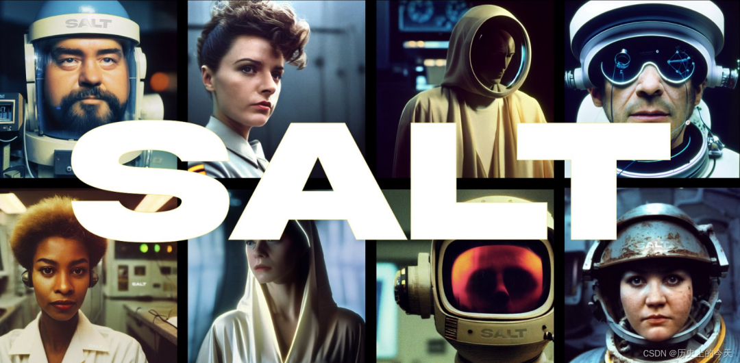 事实上,目前早就已经出现了这样的生成式技术项目,那就是 SALT。SALT 是世界上第一部 AI 创建的电影,完全由 AI 编写和配音,AI 以 70 年代的科幻电影为蓝本,使用生成式技术工具的组合来快速生成最终的视频(Stable Diffusion、MidJourney、DALL-E)、编写脚本(GPT-3)和生成角色声音(Murf、Synthesia)。