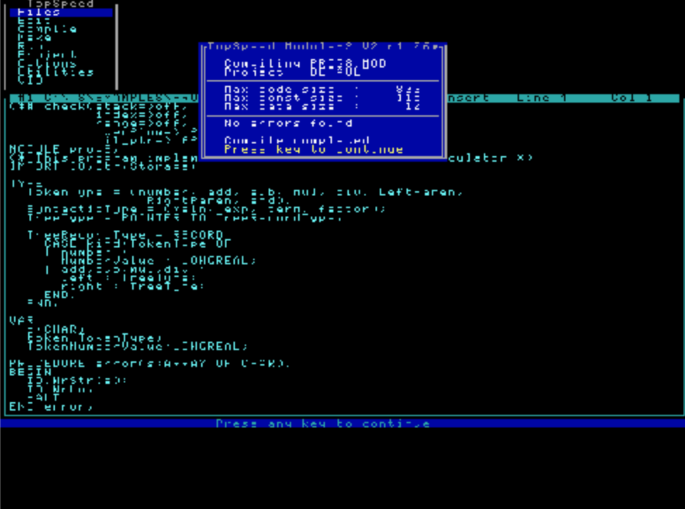 80 年代中期,Borland Turbo Pascal(不同于 Pascal)成为了一种流行的开发语言,用于开发各种软件,包括从构建 Apple Lisa 的软件到编写 Donald Knuth 的 TeX 系统。