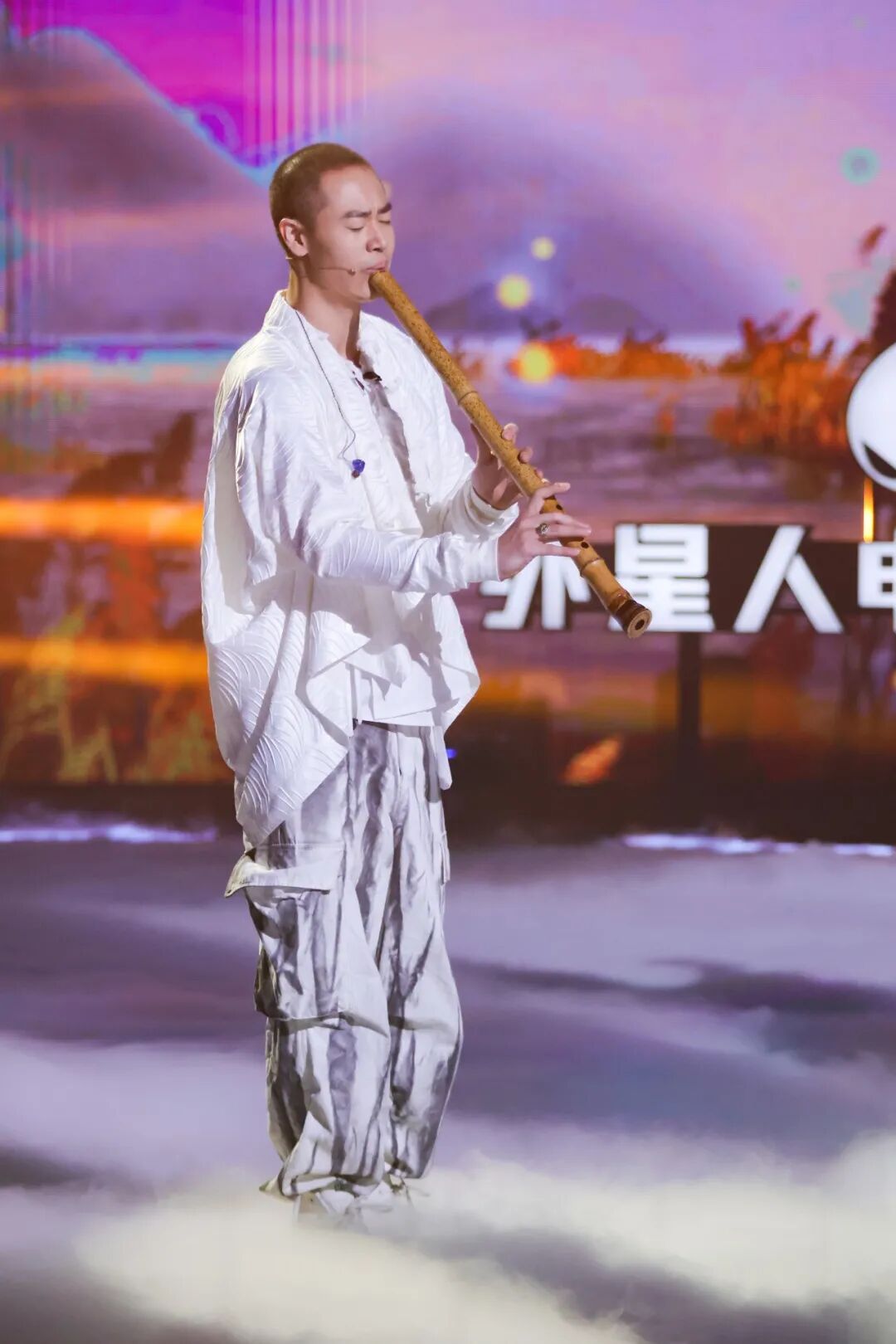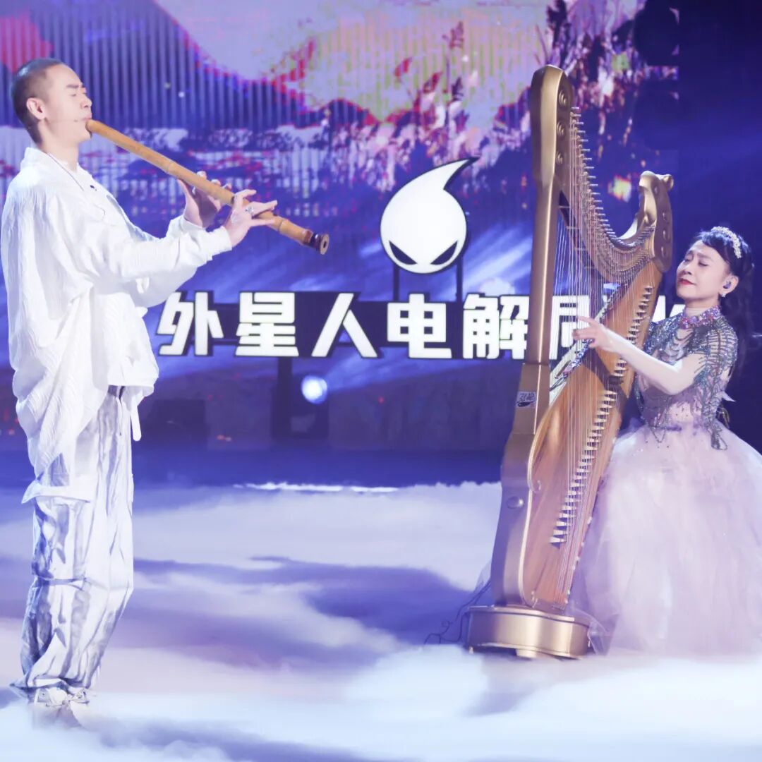 在雾气朦胧的舞台上,尺八苍凉辽阔的音色,配合箜篌竟又透露出空灵、恬静的意境。选手杨博文、一丝丝叶同箜篌大师崔君芝为我们献上了电影《大话西游》的著名插曲《芦苇荡》,一幅爱恨纠葛的画卷由此展开。
