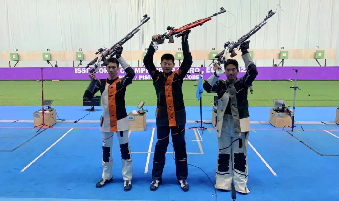 当地时间19日,2022年射击(步手枪)世锦赛上,中国选手朱明帅、杜林澍、雷浩瀚包揽青年组男子10米气步枪冠亚季军。目前,中国队已获20金、14银、9铜,暂列奖牌榜首位。
