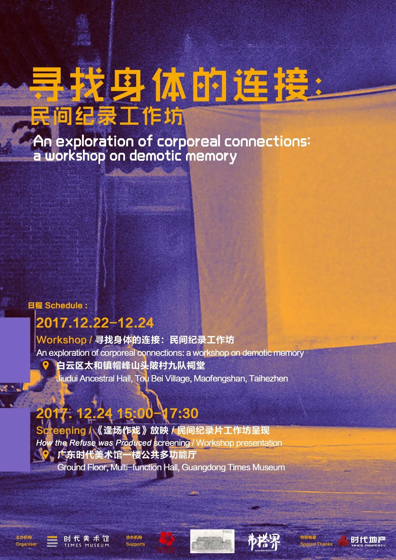 最后一天(12月24日),嘉宾及工作坊参与者将于时代美术馆放映纪录片《逢场作戏》,并对本次工作坊进行总结呈现。