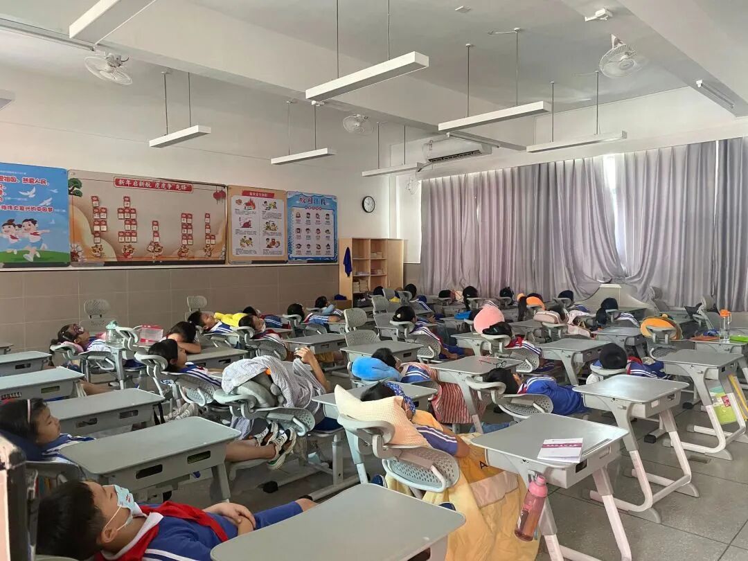 这所今年新开的公办学校给学生配备了精心设计的午休桌椅,这个午休桌椅同文理一小一样,不仅可以往后调节,还可以把双脚放上去,这样学生可以得到很好的休息。