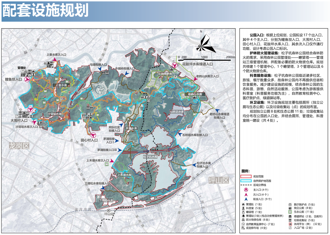 由于松子坑森林公园临近诸多社区,公园将设置多种生态科普设施和自然活动服务,为游客提供自然教育检测中心、绿道驿站等自然教育服务设施。