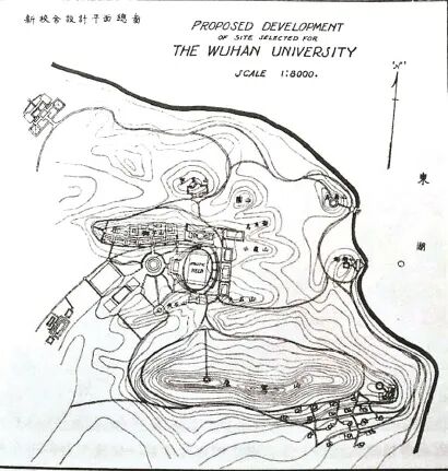 1929年,开尔斯、李锦沛设计的国立武汉大学新校舍平面总图