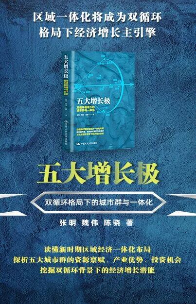 社科院张明老师在新书《五大增长极》中对双循环格局下我国五大城市群的潜力和未来机遇进行了细致研究,描绘了或将引领我国经济新一轮发展的“雁阵”布局。