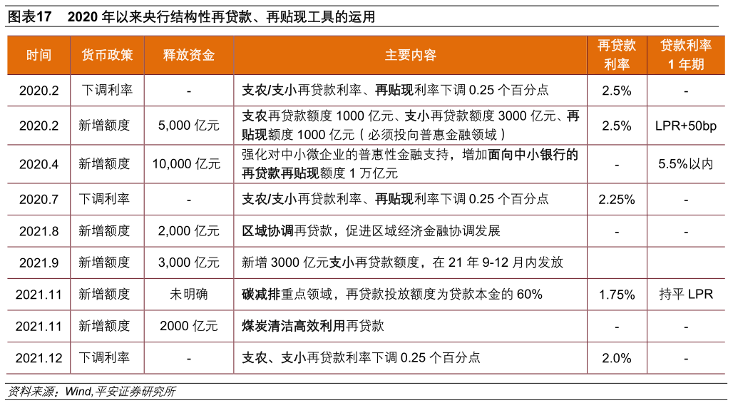 2022年货币政策的工具选择按照宽松程度从低到高,依次为再贷款、降准、降息。我们接下来分别评估其作用与空间: