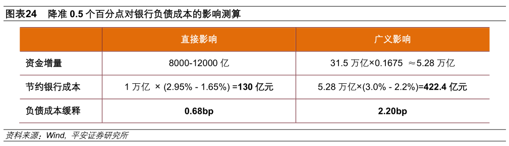 二是,降低存款准备金率1-1.5个百分点,或可间接推动贷款利率下行7-8bp(对应于LPR与MLF之间利差的收窄)。目前,降准除了弥补基础货币缺口的中性意义以外,其宽松意义主要体现在:增加银行可用的低成本资金,替换高成本的MLF,以降低商业银行负债成本,进而间接降低社会融资成本。由于传导路径较长,降准带动贷款利率下行的效果相对有限。我们具体测算如下: