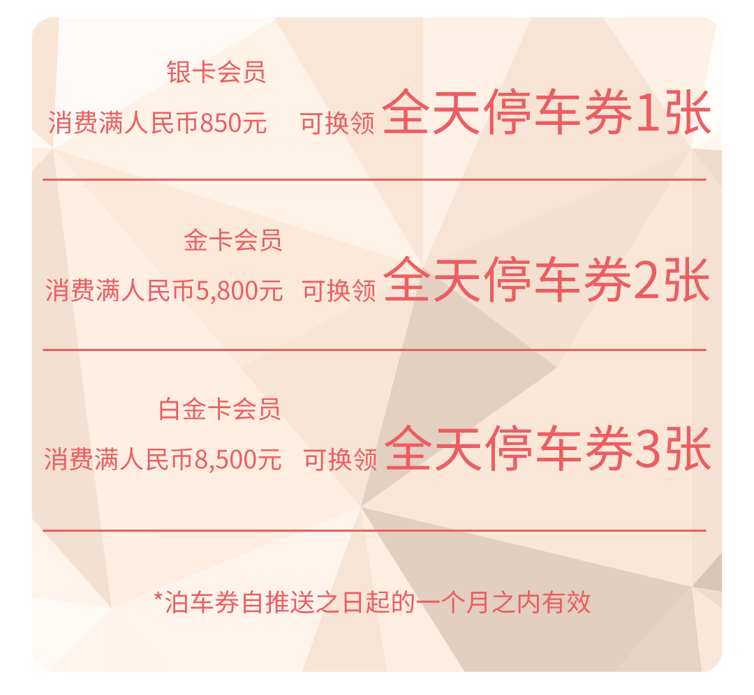 *所有活动均不同享,最高消费赏及免费泊车优惠除外